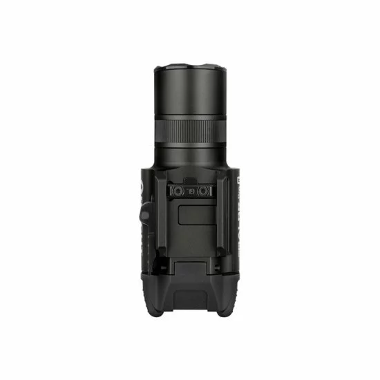 Cet interrupteur ergonomique est facile à utiliser, que la lampe soit utilisée sur une arme à feu courte ou longue. Les interrupteurs marche/arrêt sont situés à l’arrière de la lampe et peuvent être utilisés des deux côtés (droitier et gaucher).