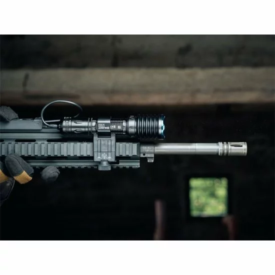 Le Warrior X 3 est un feu de route tactique avec une construction de haute qualité, des performances exceptionnelles et regorge de fonctionnalités utiles. La lampe est livrée avec deux anneaux de préhension interchangeables et son boîtier texturé offre une prise supplémentaire dans toutes les conditions météorologiques. Le commutateur arrière a deux positions, en fonction de la distance à laquelle ce commutateur est enfoncé. Cet interrupteur sert également de suspension magnétique et de point de charge pour le câble de charge fourni (MCC3).
