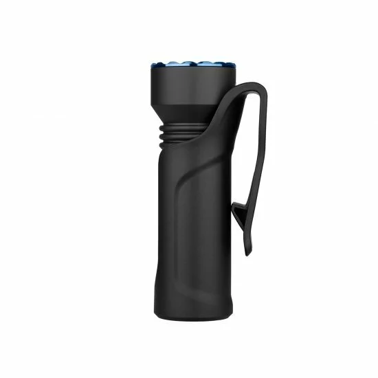 Le Olight Javelot Mini est un projecteur ultra compact avec une construction de haute qualité, des performances exceptionnelles et regorge de fonctionnalités utiles. Sa LED unique a une puce ronde, ce qui garantit que le faisceau a un point chaud uniforme et extra lumineux. son boîtier texturé offre une adhérence supplémentaire dans toutes les conditions météorologiques, une bague d’impact anodisée protège votre objectif. Le commutateur arrière a deux positions, en fonction de la distance à laquelle ce commutateur est enfoncé. Cet interrupteur sert également de suspension magnétique et de point de charge pour le câble de charge fourni (MCC1-A). Cette lampe de poche vous permet également de sentir lorsque la batterie est presque vide au moyen d’un signal de vibration. La vibration n’est pas audible et n’est activée que lorsqu’elle est utilisée ou allumée. La lampe est livrée avec un étui de transport, qui est équipé d’un clip de ceinture et maintient la lampe fermement en place.