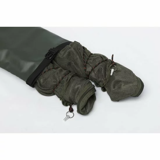 Un sac puant entièrement étanche qui peut contenir deux élingues de retenue ou même une combinaison de têtes d’épuisette et de supports. La finition lisse aide à empêcher les poissons et les débris du lac de s’y coller, ce qui aide à prévenir l’accumulation de bactéries, qui est la principale cause des odeurs. Doté d’une entrée facile à rouler avec une boucle à clip sécurisée qui empêche le contenu humide de s’échapper pendant le transport.