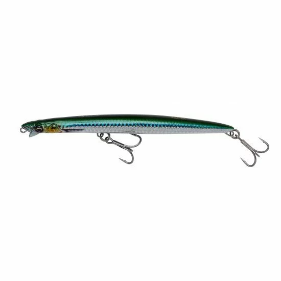 Crayon à lancer long avec un profil super réaliste, qui vous permet de pêcher de différentes manières pour provoquer des attaques de prédateurs. Le leurre glissera et clignotera sur une prise tordue en raison de la conception “demi-lèvre” et lors de la chute, le leurre tombera avec une forte vibration et un hochet fort. Parfait pour les sérioles, les vivaneaux, le mahi mahi, le tassergal, les barracudas et le thon.